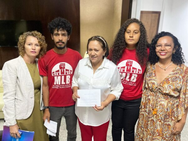 Ao lado das deputadas estaduais Isolda Dantas e Divaneide Basílio (PT), representantes do MLB entregaram na segunda (5) uma carta à governadora do Estado, Fátima Bezerra (PT), em que reclamam da polícia para a governadora: “Temos sofrido inclusive várias ‘assediações’ (sic) por parte da polícia”, disse. Trecho da carta ainda reclama do próprio governo: “O atraso de dois anos do programa pró-moradia do Governo do RN agrava ainda mais essa situação”.