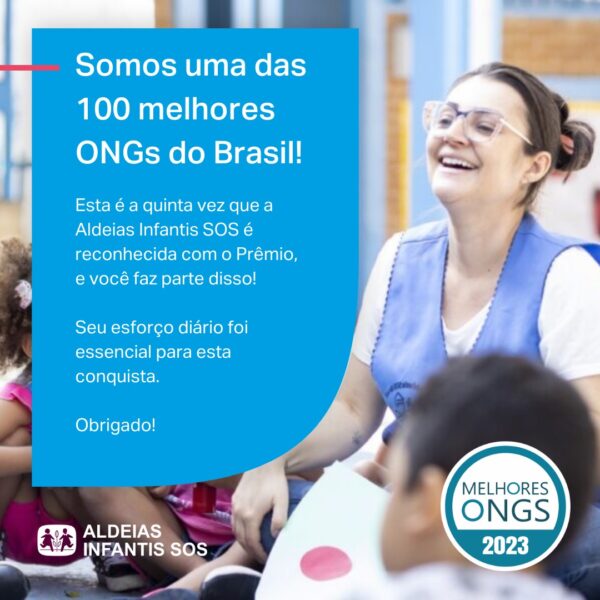 A Aldeias Infantis SOS foi uma das 100 Organizações a receber o Prêmio Melhores ONGs em 2023. Esta é a quinta vez que a Organização é reconhecida pela premiação e a terceira consecutiva, sendo vencedora também em 2017, 2019, 2021 e 2022.