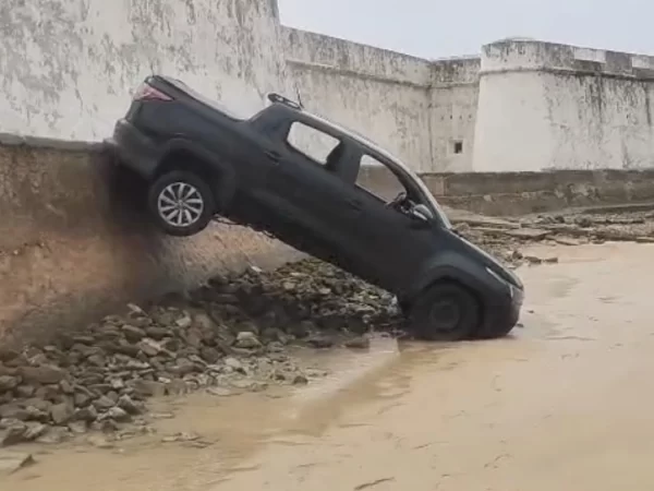 Um carro caiu da passarela de acesso ao Forte dos Reis Magos, na praia do Forte, e ficou pendurado. De acordo com a Polícia Militar, responsável pela guarda do cartão-postal, o caso aconteceu pela madrugada desta sexta-feira (9). No entanto, a dinâmica do acidente não é conhecida. No trecho, o fluxo de veículos não é permitido.