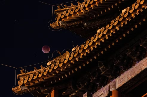 ‘Lua de Sangue’, eclipse total lunar no céu de Pequim, na China, em setembro de 2025. — Foto: Reuters/Maxim Shemetov