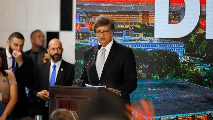 O presidente do Senado e do Congresso Nacional, Rodrigo Pacheco (PSD-MG), participou nesta 2ª feira (8.jan.2024) do evento “Democracia Inabalada”, em alusão aos atos do 8 de Janeiro, quando extremistas invadiram e depredaram o Palácio do Planalto, o Congresso Nacional e o STF (Supremo Tribunal Federal).