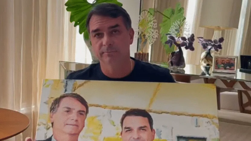 “Pai, neste ano você não vai poder ver este vídeo. Você está censurado em um país onde a censura é expressamente vedada na nossa constituição. Você virou um preso político, mas você nos ensinou a ter fé, a ter força, a ter lealdade. Nenhuma foto eu vou poder botar com você hoje”, disse Flávio enquanto segurava um quadro com a imagem de Bolsonaro.