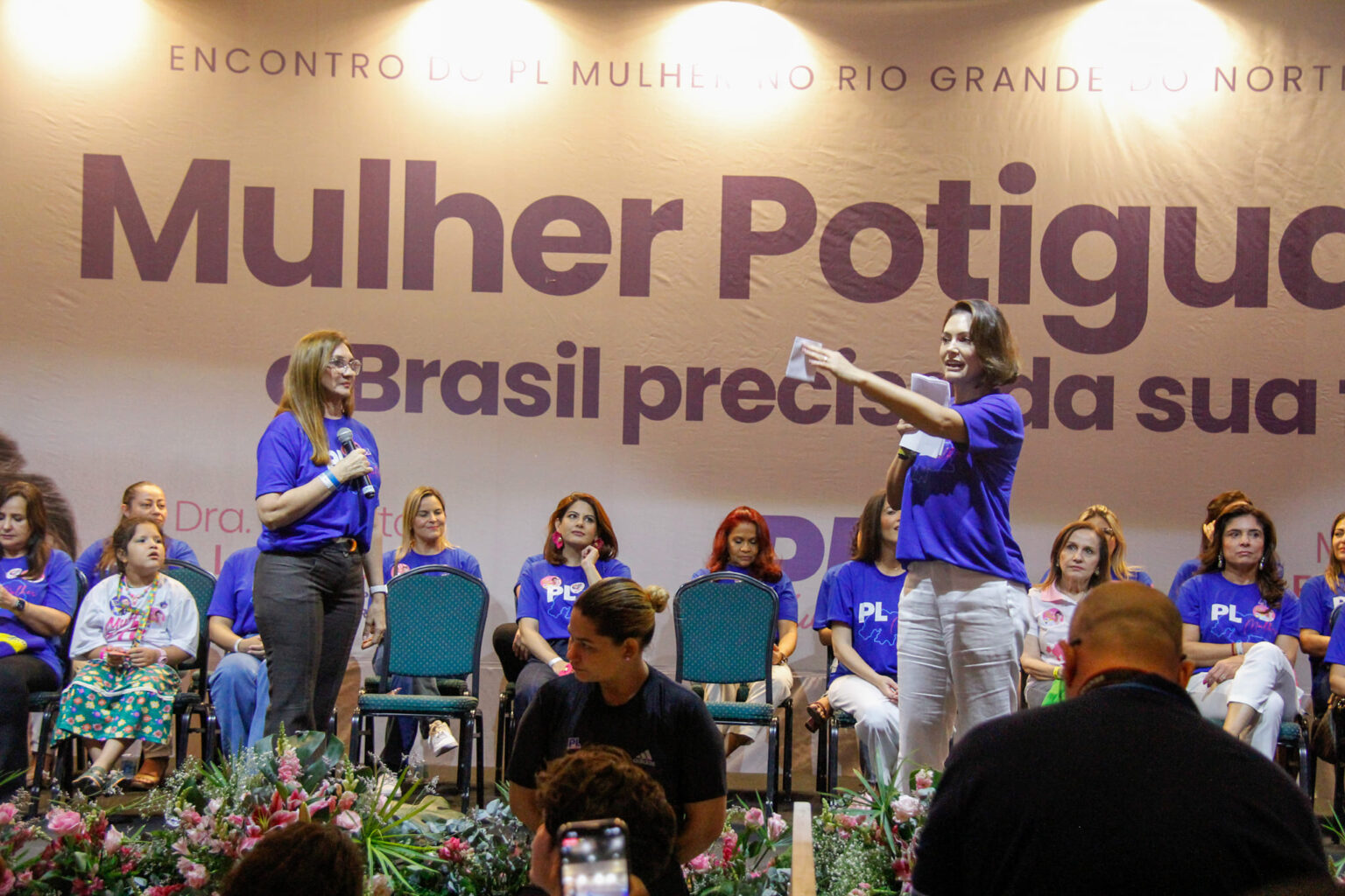 Em Natal, no sábado (02) aconteceu o Encontro Estadual do PL Mulher, com presença da presidente nacional do PL Mulher, a ex-primeira-dama Michelle Bolsonaro, que foi recepcionada pela presidente no RN, Dra Roberta Lacerda.