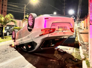 Segundo a polícia, o motorista perdeu o controle do carro modelo Sentra que dirigia, bateu em outro veículo que estava estacionado na frente de um condomínio, e capotou. O carro também atingiu o portão do condomínio.