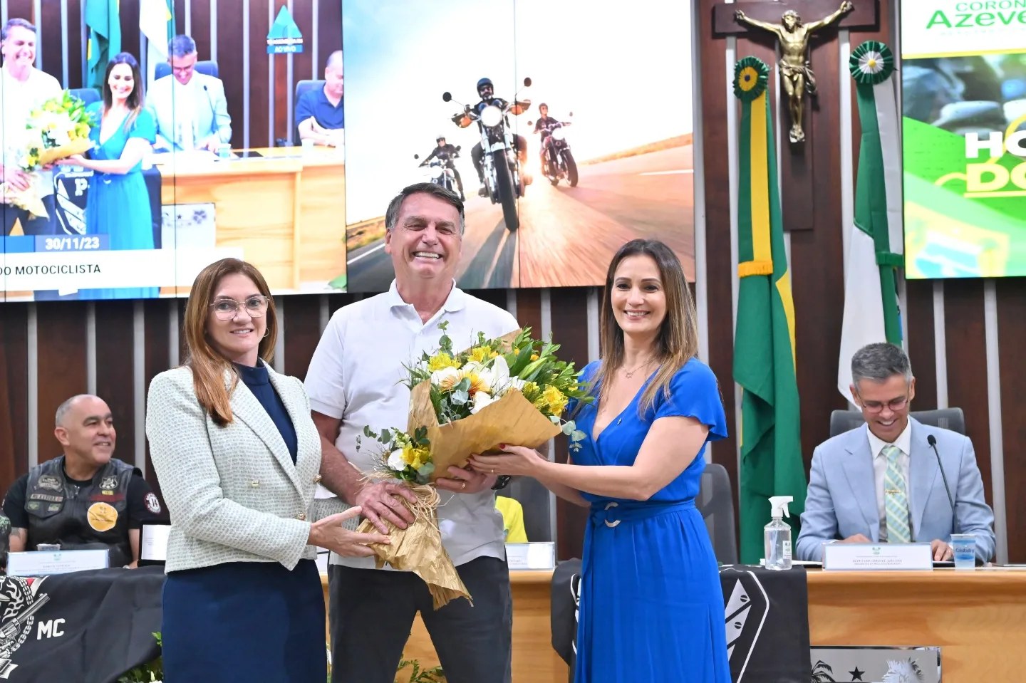 “Parabenizar todos os motoclubes presentes, bem como o ex-presidente Jair Bolsonaro que também foi homenageado e ainda recebeu em nome de sua esposa, a ex-primeira-dama Michelle Bolsonaro, flores de boas-vindas ao nosso estado”, disse a deputada Terezinha Maia.