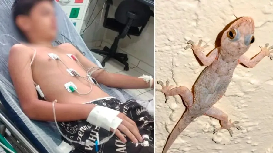 O menino de 11 anos que comeu lagartixa frita precisou ser internado pela terceira vez, na noite de quarta-feira (22), em Formosa, no Entorno do Distrito Federal. Segundo Raquel de Souza, o filho está com diarreia, fraqueza e dores de cabeça. Ainda de acordo com a mãe, o garoto já perdeu 3 kg desde que comeu lagartixa junto com a madrasta dele e a mãe dela.