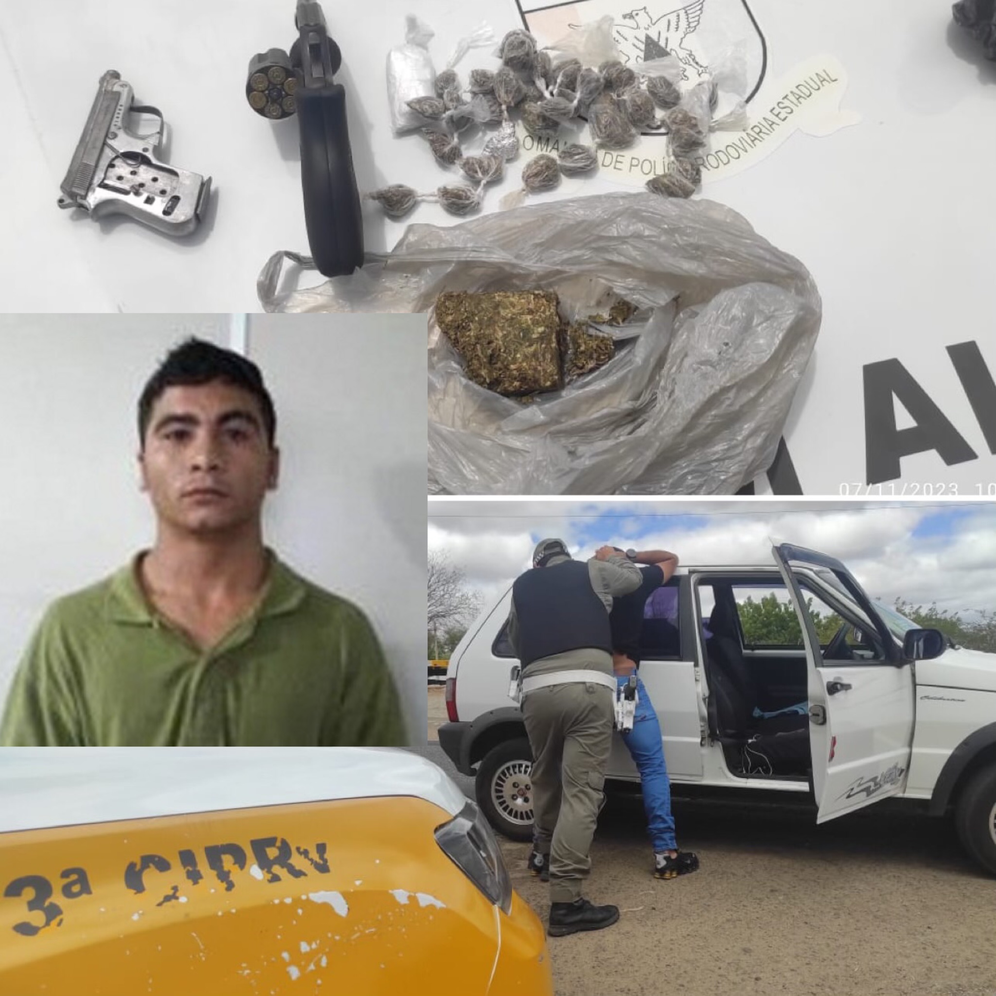A Polícia Rodoviária Estadual apreendeu, na manhã desta terça-feira (07/11), duas armas de fogo, sendo um revólver calibre .38 e uma Beretta, além de munições intactas, entorpecentes e uma certa quantia em dinheiro na posse de um indivíduo que é foragido da Justiça, e estava em um automóvel na rodovia RN-118, saída de Caicó para São João do Sabugi.