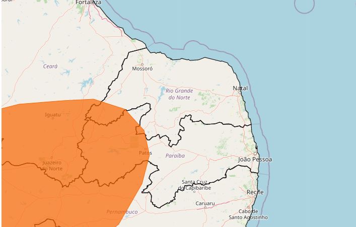 O Rio Grande do Norte está com 29 municípios sob aviso de baixa umidade nesta quarta-feira (25) [veja lista no fim da matéria]. O alerta, emitido pelo Instituto Nacional de Meteorologia (Inmet), tem duração até às 18h. A publicação é de legenda laranja, a na escala intermediária de severidade e que representa perigo.