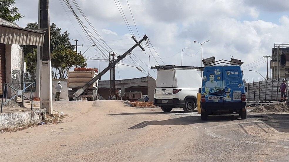 De acordo com a Neoenergia Cosern, por volta das 13h20, um caminhão tipo caçamba, que é utilizado nas obras de readequação da Avenida Felizardo Moura, colidiu com um poste de média tensão. Com o impacto da batida, o poste ficou pendurado e parte da fiação elétrica caiu na avenida.