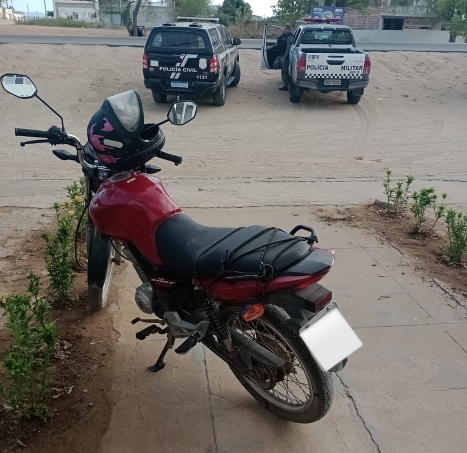 Nesta terça-feira (10/10), policiais militares da Rádio Patrulha do 6º BPM recuperaram uma motocicleta com queixa de furto/roubo em Caicó. A guarnição realizava patrulhamento de rotina no bairro Barra Nova, zona oeste da cidade, quando notou o veículo parado numa área de pouca circulação.