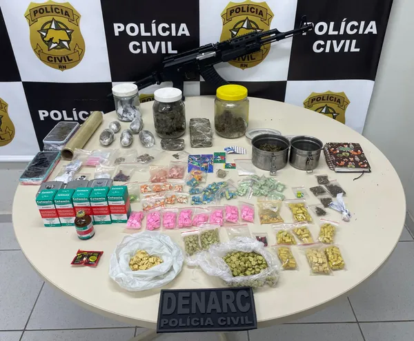 Foram cumpridos dois mandados de prisão preventiva e um mandado de busca e apreensão domiciliar na zona oeste da cidade. Um dos suspeitos, identificado como João Paulo de Medeiros, foi autuado em flagrante delito pelas práticas dos crimes de tráfico de drogas, com apreensão de crack, cocaína e maconha, e posse irregular de artefato explosivo sem autorização legal. O homem foi encaminhado para o sistema prisional, onde permanecerá à disposição da Justiça.