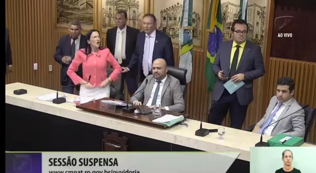 Pouco depois, ainda não se sabe o motivo direito, Robson Carvalho e Herbert Sena trocaram “bufetes”. A sessão foi suspensa por alguns minutos e os dois foram retirados do plenário. Os colegas ficaram impressionados com a situação.