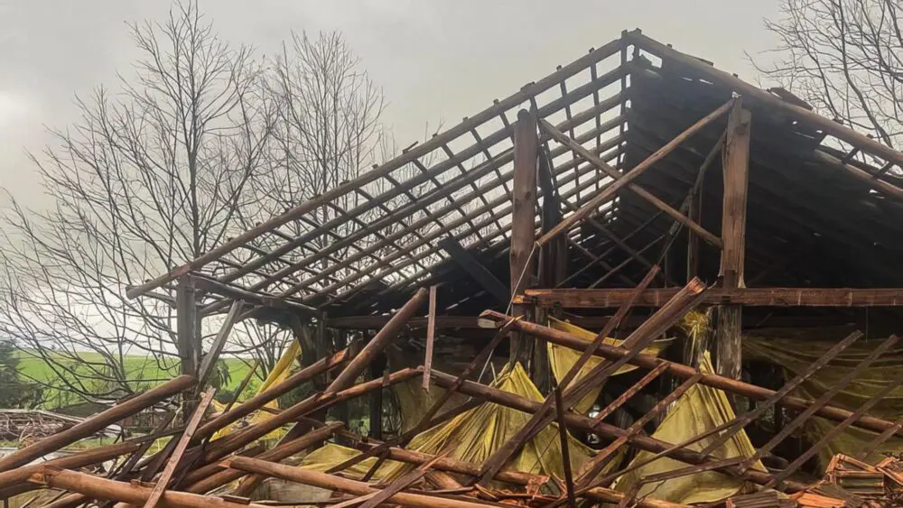 Uma vaca foi parar em cima do telhado de uma residência em Estrela, no Vale do Taquari, a 112 km de Porto Alegre. O caso aconteceu na quarta-feira (6), após a região ser afetada pela cheia do Rio Taquari, ocasionada pela passagem de um ciclone extratropical. De acordo com a prefeitura da cidade, o animal caiu após o telhado ceder, mas não se machucou.