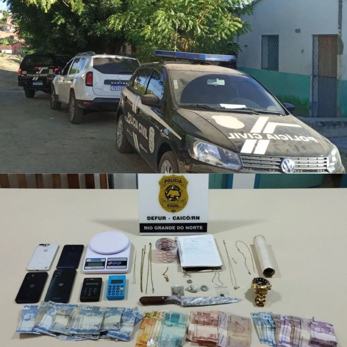 Todos foram alvos de uma ação da polícia por estarem envolvidos em uma sessão de tortura no âmbito do “tribunal do crime” de uma facção criminosa, praticada contra duas mulheres, além de outros crimes. A Polícia apreendeu dinheiro em espécie, drogas e aparelhos celulares.