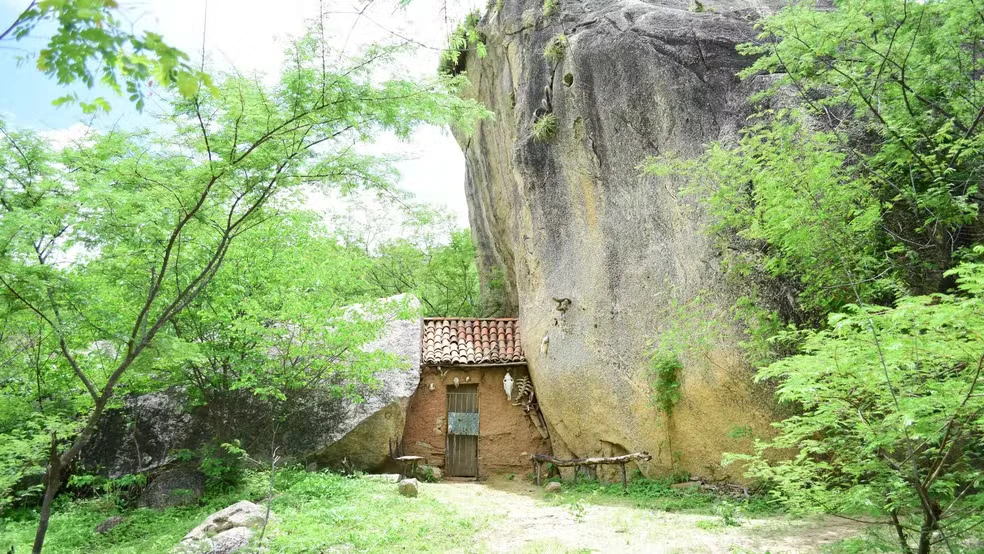 É uma casinha muito engraçada: tem teto, tem porta e tem armadores de redes pendurados entre as duas rochas gigantes que servem de paredes. A casinha em questão existe, e foi erguida entre duas pedras na localidade do Firino, no distrito de Missi, município de Irauçuba, em pleno sertão cearense.