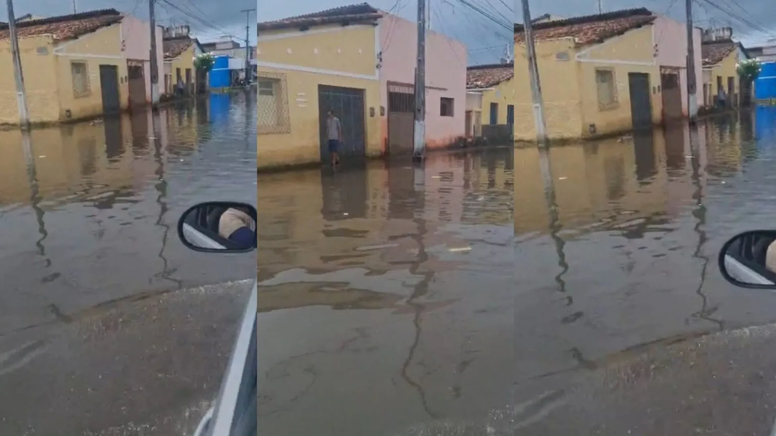 Um vídeo gravado nesta terça mostra a água acumulada em um trecho nas imediações do mercado público.