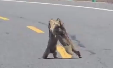 Uma briga entre duas marmotas provocou congestionamento em uma rodovia da China. As imagens, que viralizaram nesta segunda-feira (12) nas redes sociais, mostram os animais trocando tapas e empurrões.