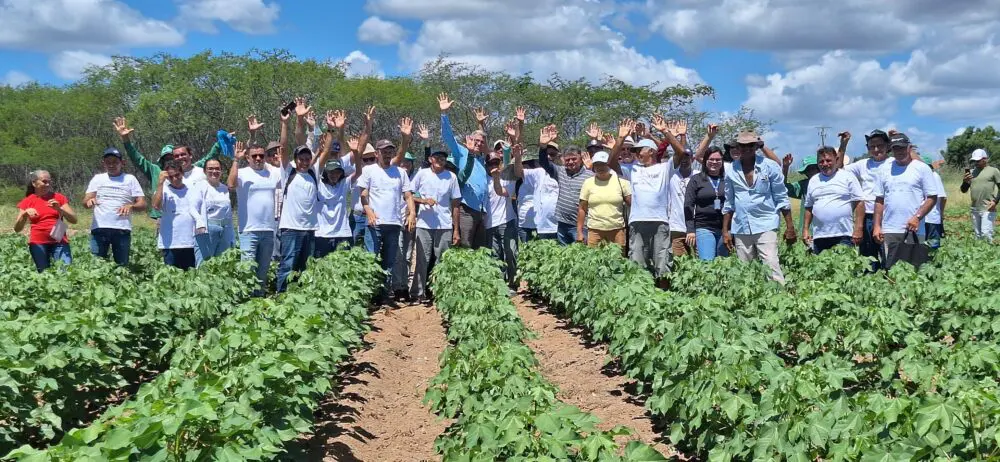Durante a formação, os participantes realizaram visitas técnicas a três áreas de cultivo de algodão e seus consórcios, observando na prática diferentes estágios e manejos produtivos. A atividade possibilitou a troca de experiências e o fortalecimento do conhecimento sobre os desafios e soluções no cultivo consorciado no contexto do sertão.