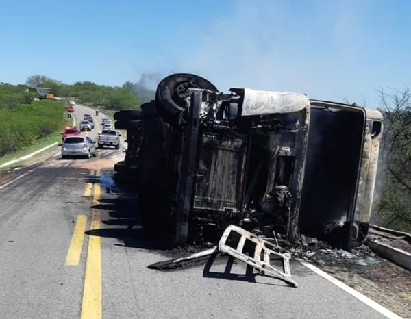 Um caminhão tombou e pegou fogo no km 92 da BR-427, no município de Caicó, na manhã desta sexta-feira (18). Segundo a Polícia Rodoviária Federal do Rio Grande do Norte (PRF/RN), o acidente provocou a interdição parcial da pista no sentido decrescente, com apenas uma faixa liberada desde as 9h. O condutor do veículo sofreu lesões leves e foi encaminhado a uma unidade hospitalar, onde está sob cuidados médicos.