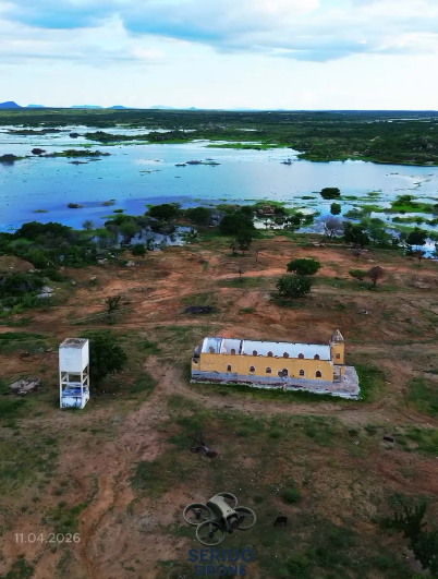 Imagens que circulam nas redes sociais mostram a elevação do nível do reservatório, incluindo registros da igreja da comunidade e de áreas já parcialmente cobertas pela água, evidenciando o avanço da inundação sobre a localidade.