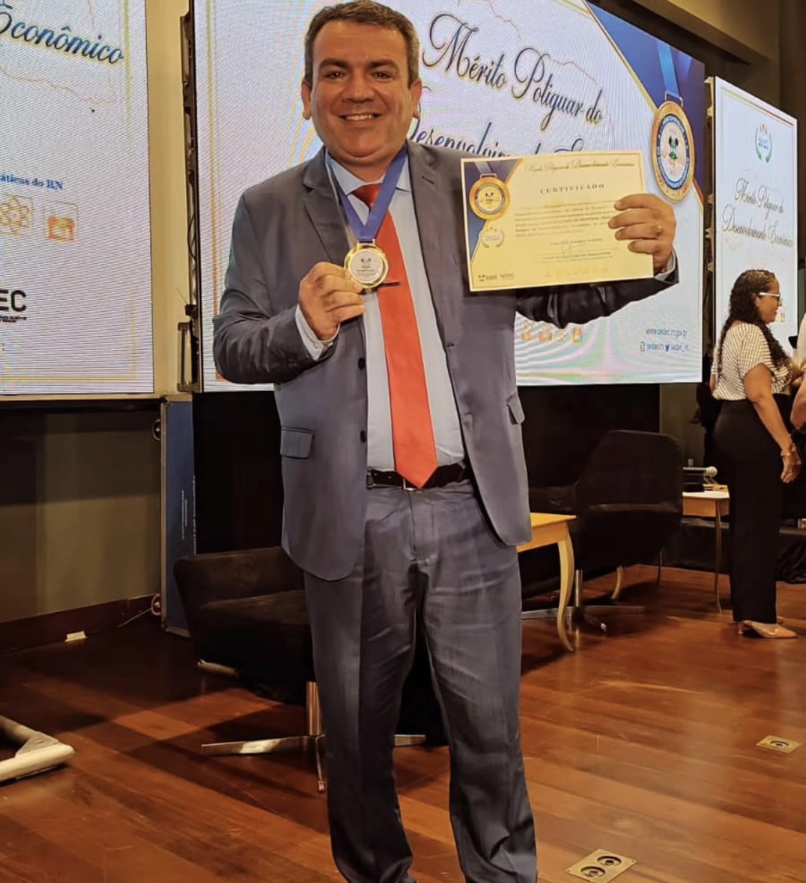 É natural de Acari-RN, mas fortemente estabelecido na capital seridoense. EVALDO GOMES iniciou sua atividade empresarial com o capital de apenas dois salários mínimos, fazendo cadeiras de metal.