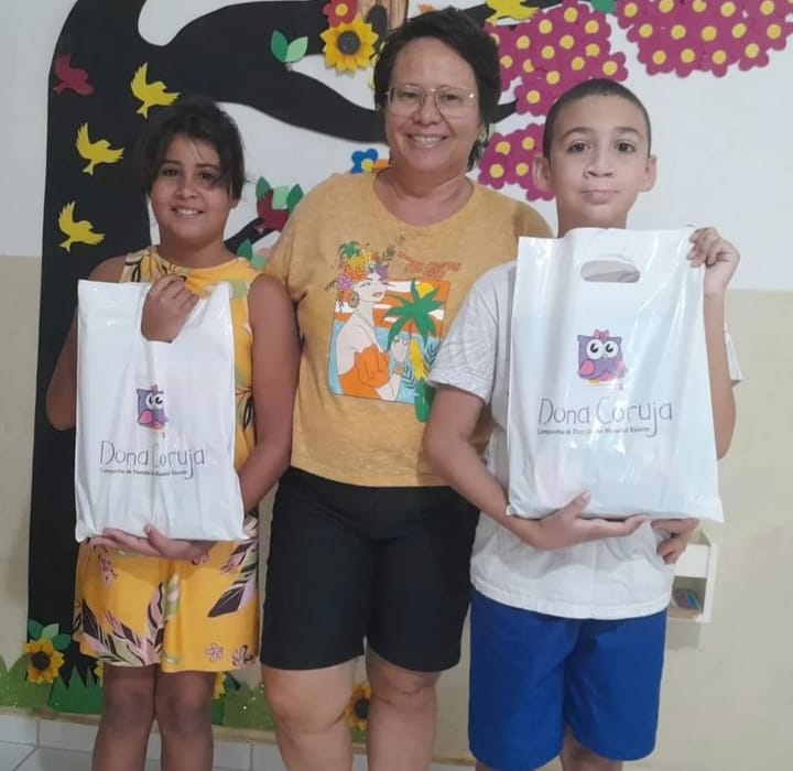Várias crianças já foram contempladas neste ano, recebendo materiais que já foram adquiridos pela Campanha Dona Coruja, mas você ainda pode escolher uma das opções de colaboração e entrar na campanha.