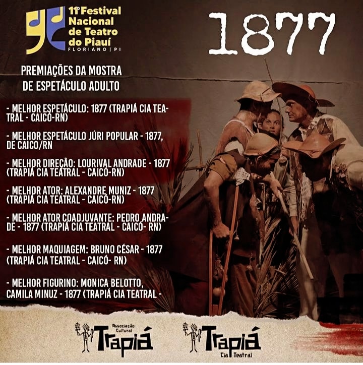 O espetáculo 1877 da Trapiá Cia Teatral, foi selecionado para apresentar-se no 11° Festival Nacional de Teatro do Piauí, realizado na cidade de Floriano, PI. O Festival contou com 20 espetáculos apresentados de 24 a 28 de janeiro.