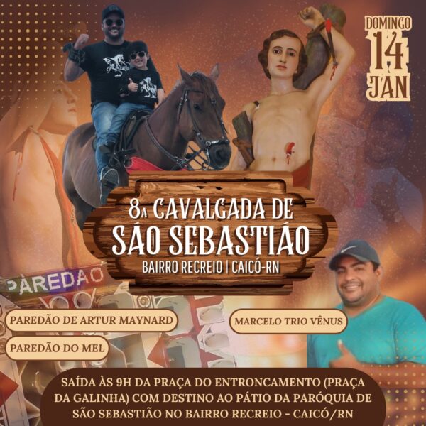 🏇 Saída às 9 horas da Praça do Entroncamento (Praça da Galinha) na Barra Nova, com destino ao Pátio da Paróquia de São Sebastião, no bairro Recreio – Caicó/RN.