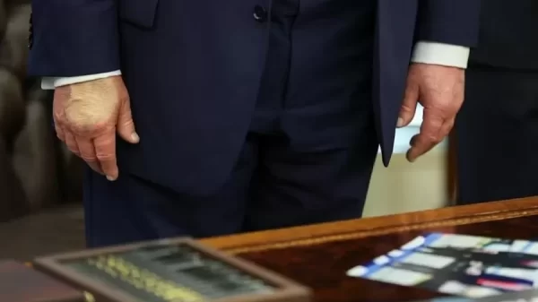 Hematoma na mão não teria relação com doença, segundo a Casa Branca. Leavitt disse que a mancha “é consistente com uma pequena irritação dos tecidos moles causada por apertos de mão frequentes e pelo uso de aspirina, que é tomada como parte de um regime padrão de prevenção cardiovascular”.