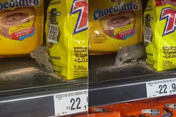“Me deparei com o rato na prateleira se alimentado do produto […]. Achei um absurdo um mercado grande da cidade ter este tipo de situação”, afirmou ela. No vídeo, a mulher destacou que o animal parecia estar acostumado com a movimentação de pessoas.