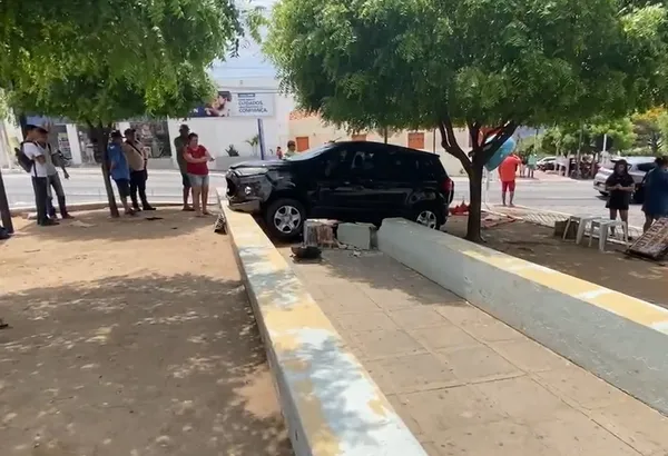 Um carro desgovernado saiu da BR-427, invadiu uma praça e atropelou duas pessoas na manhã desta quarta-feira (20), em Acari, no Seridó potiguar.