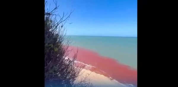 Um vídeo publicado pelo perfil @tibau_noticias_pipa mostra o mar com tom avermelhado, despertando curiosidade de turistas e moradores enquanto órgãos ambientais acompanham de perto o caso.