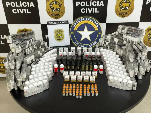 A Receita Federal e a Polícia Civil do Rio Grande do Norte realizaram, na manhã desta segunda-feira (23), a apreensão de esteroides anabolizantes e medicamentos de origem irregular no município de Natal (RN). A carga foi avaliada preliminarmente em cerca de R$ 480 mil. De acordo com as autoridades, o material estava em posse de um homem de 37 anos, que foi preso em flagrante durante a ação.