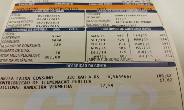 Quando a conta de luz é calculada pela bandeira verde, não há nenhum acréscimo. Quando são aplicadas as bandeiras vermelha ou amarela, a conta sofre acréscimo a cada 100 quilowatts-hora (kWh) consumido.
