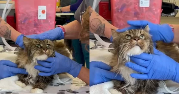 Gatinha recebendo cuidados médicos após o resgatada no centro de acolhimento da ONG | Foto: Best Friends Animal Society / Divulgação