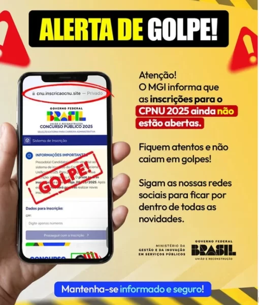 O governo federal emitiu um alerta sobre golpes envolvendo concursos públicos. Os criminosos estão criando sites falsos simulando inscrições e cobrando valores.