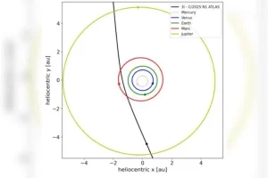 Além disso, o 3I/ATLAS ficará temporariamente escondido atrás do Sol, do ponto de vista da Terra em outubro. Esse período coincidiria com a melhor janela para realizar manobras de desaceleração, segundo cálculos apresentados e que supõem que ele possa ser uma sonda com inteligência própria.