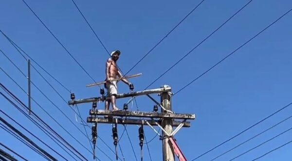 O homem pegou um bastão de madeira e subiu no poste de energia elétrica. Por causa disso, ao menos 380 clientes da Companhia Energética de Minas Gerais (Cemig) ficaram sem luz. No início da tarde, parte deles tiveram a situação normalizada, e outros 59 moradores continuavam sem energia elétrica. Conforme informado pela Cemig, foi necessário “desligar a rede no local por medidas de segurança”.