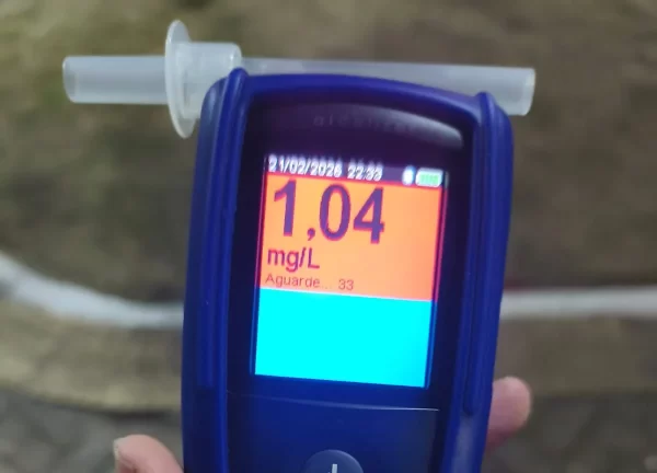 Submetido ao teste do bafômetro, o resultado apontou 1,04 mg/l de álcool por litro de ar alveolar, índice superior a três vezes o limite que configura crime de trânsito, conforme o Código de Trânsito Brasileiro.