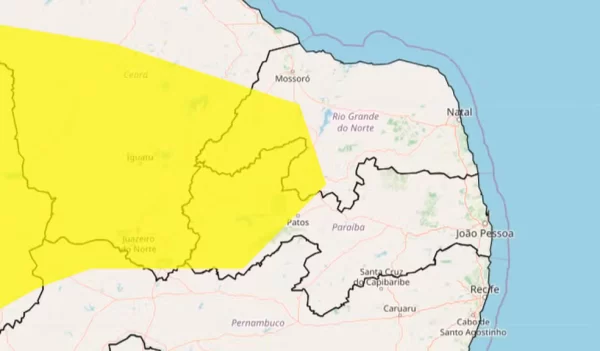 O alerta atinge diversas cidades do interior do Rio Grande do Norte, especialmente na região Oeste e Central Potiguar.