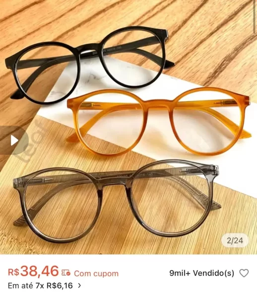 Uma simples busca nos aplicativos de venda direta ao consumidor pela internet revelam armações vendidas até por R$ 25,00 mas expostas nas óticas por preços de R$ 600,00.