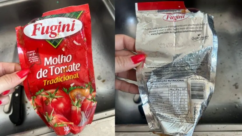 A empresária Thianna Câmara, de 32 anos, contou à reportagem que comprou o pacote de molho de tomate em julho, em um supermercado no bairro Capim Macio, na capital do Rio Grande do Norte. O vencimento do produto, conforme a embalagem, é janeiro de 2026.