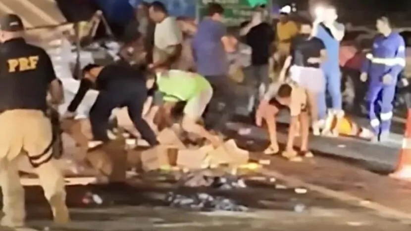 Durante a noite, mesmo com a presença da Polícia Rodoviária Federal (PRF), várias pessoas saquearam a mercadoria. Alguns conseguiram levar várias caixas de sabão, mas a polícia agiu e utilizou spray de pimenta para conter a ação.