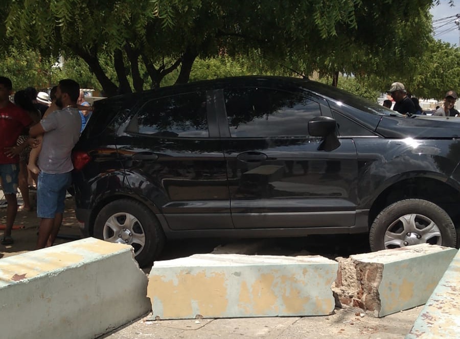 Um carro desgovernado saiu da BR-427, invadiu uma praça e atropelou duas pessoas na manhã desta quarta-feira (20), em Acari, no Seridó potiguar.