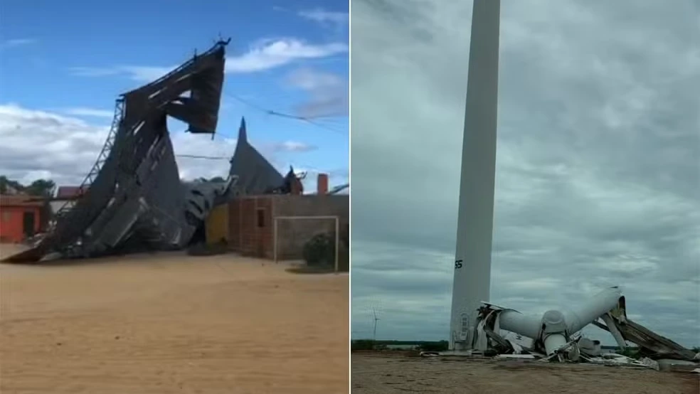 Na entrada da cidade, parte de uma torre eólica também caiu devido aos ventos fortes. O meteorologista Gilmar Bristot, da Empresa de Pesquisa Agropecuária do Rio Grande do Norte (Emparn), informou que a região registrou rajadas de até 35 km/h nas últimas horas.