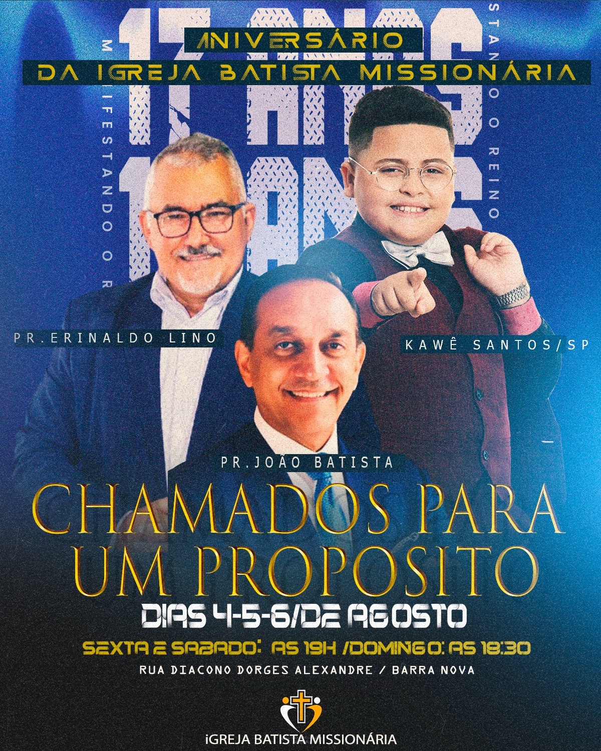 A Igreja Batista Missionária está celebrando 17 anos de existência com uma programação especial alusiva ao seu aniversário: Chamados para um propósito.
