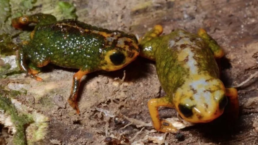O grupo constatou que o sapo apresenta poucos ossos e dedos funcionais, possui coloração verde-oliva na parte de cima e cabeça, além de braços e pernas alaranjados.