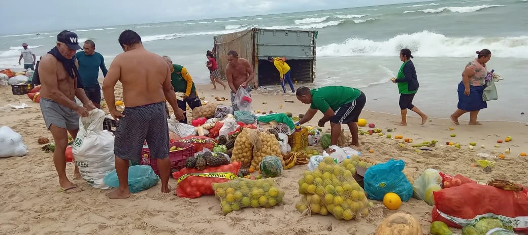 Um contêiner carregado de frutas encalhou na areia da praia de Barra do Rio, em Extremoz, no Litoral Potiguar, na manhã desta quarta-feira (18). Além das frutas, também foram localizados galões de óleo, que derramaram a substância no local. A Prefeitura de Extremoz informou que o contêiner e os galões de óleo faziam parte da carga da embarcação que naufragou no último domingo (15), no trajeto que ia de Recife à Fernando de Noronha. O naufrágio aconteceu a aproximadamente 50 milhas náuticas (cerca de 90 quilômetros) do município de Tibau do Sul, no Litoral Sul potiguar.