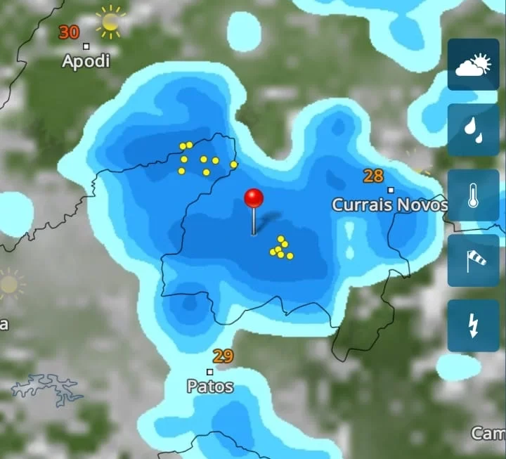 O aplicativo CLIMA & RADAR prevê chuvas em Caicó para hoje, 20/01/26, a partir das 19h.
