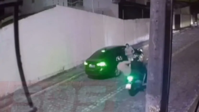 Ainda segundo as imagens, o criminoso assume a direção e foge, e o cúmplice deixa a área pilotando a moto. Apesar do susto, não há informações sobre feridos.